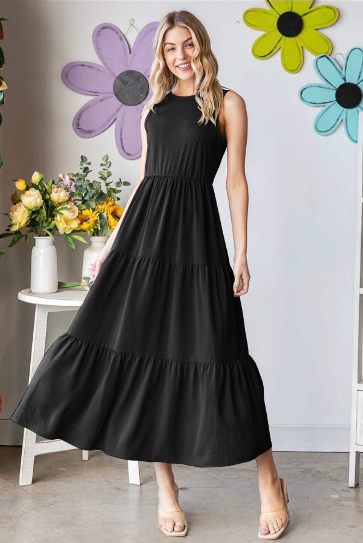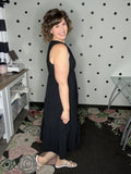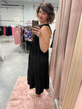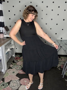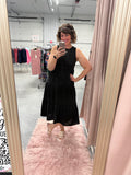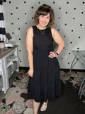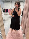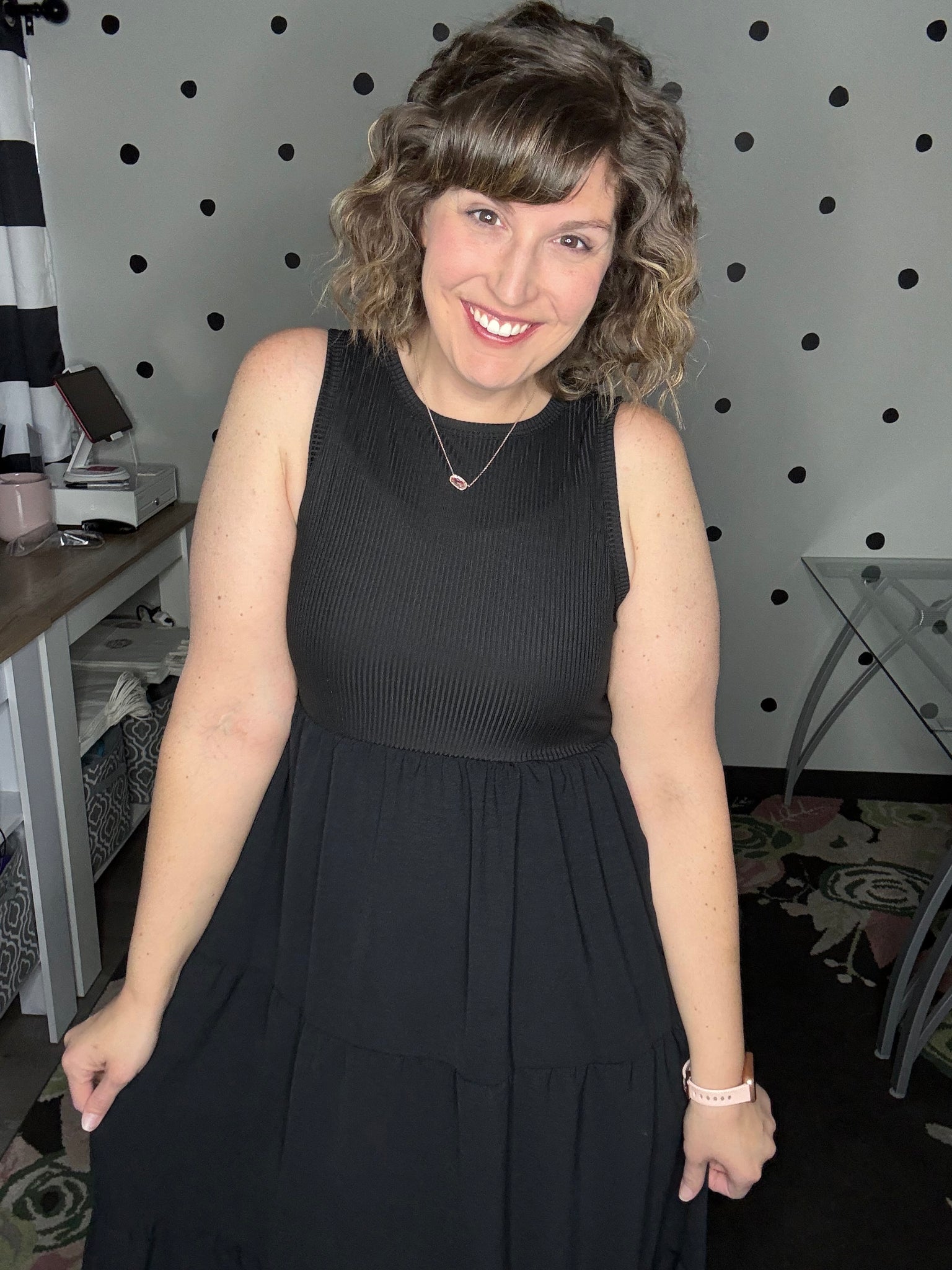 A classic for your wardrobe! This black midi dress features a high neck and sleeveless design. The top portion is ribbed and the bottom portion is 100% polyester. Tired of clingy dresses? This is the right one for you! The fit is true to size. Alyssa is a size 12/14 and wearing a medium here.
