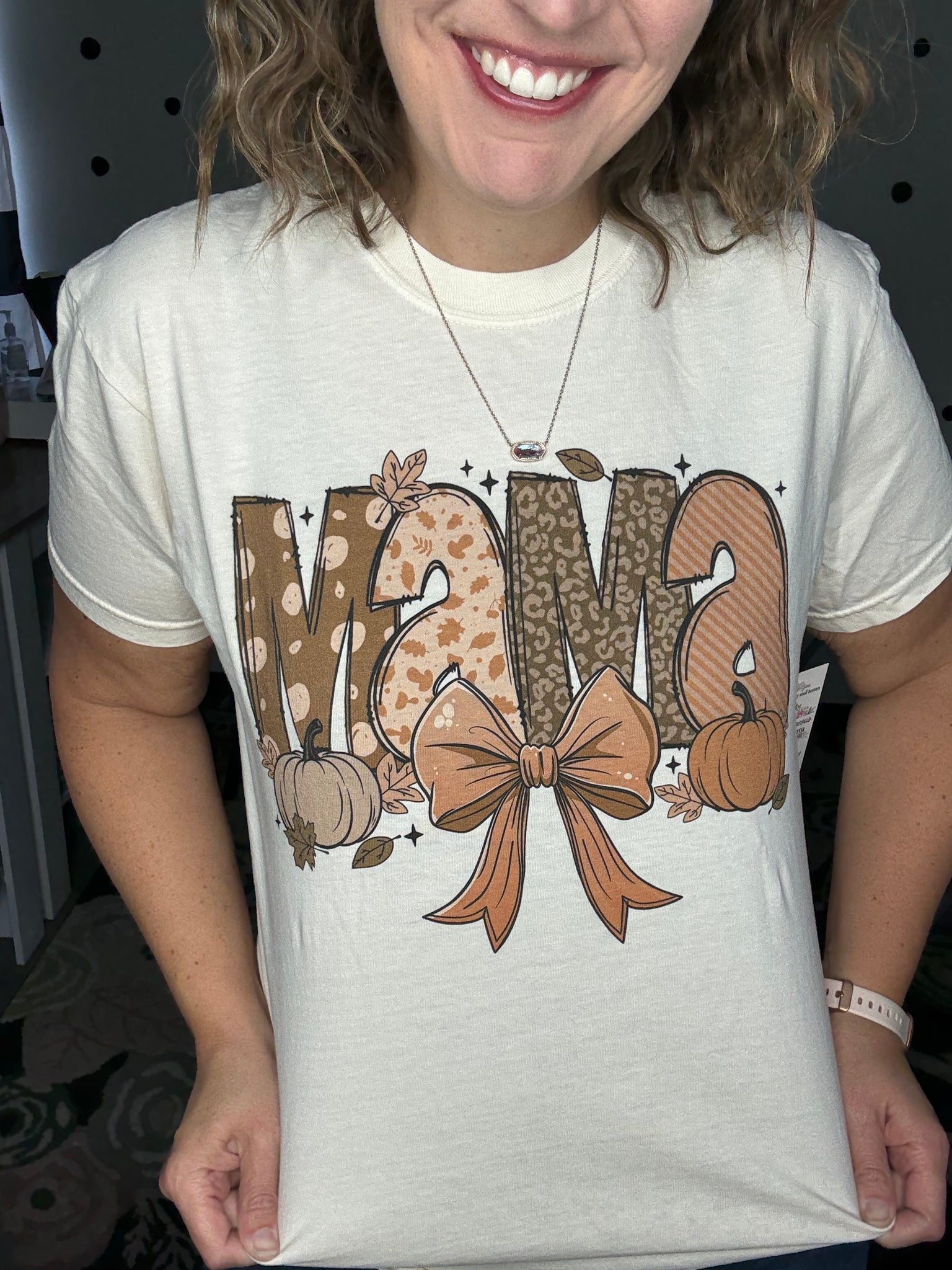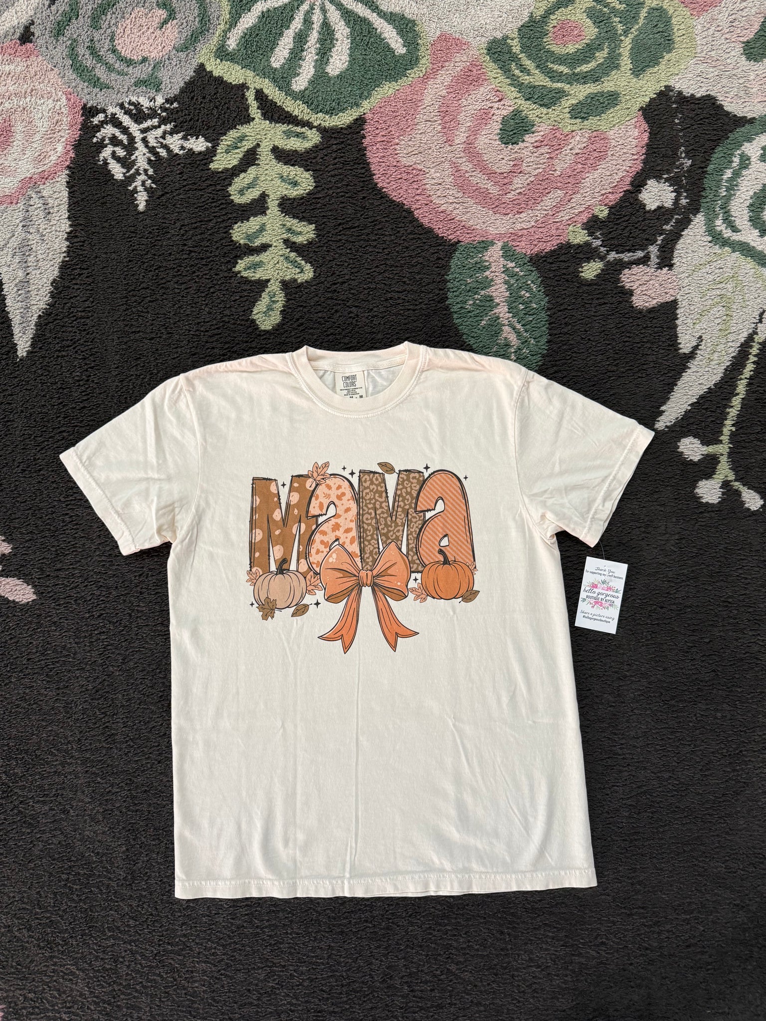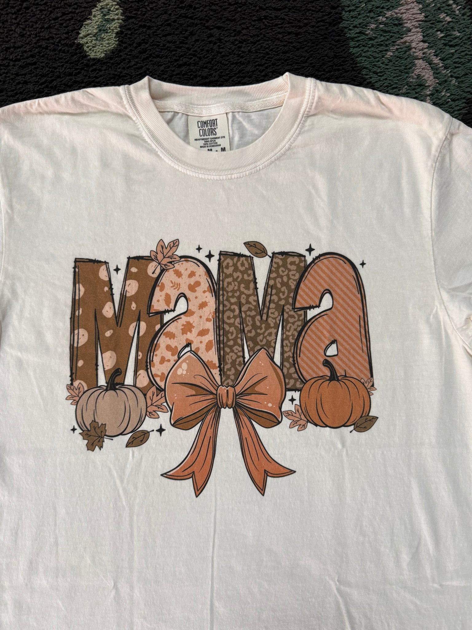 Fall themed MAMA and bow printed on a IVORY Comfort Colors t-shirt. Unisex fit. True to size. 100% cotton.