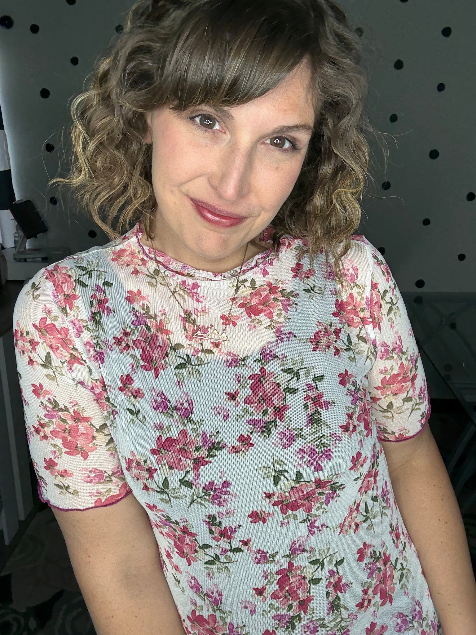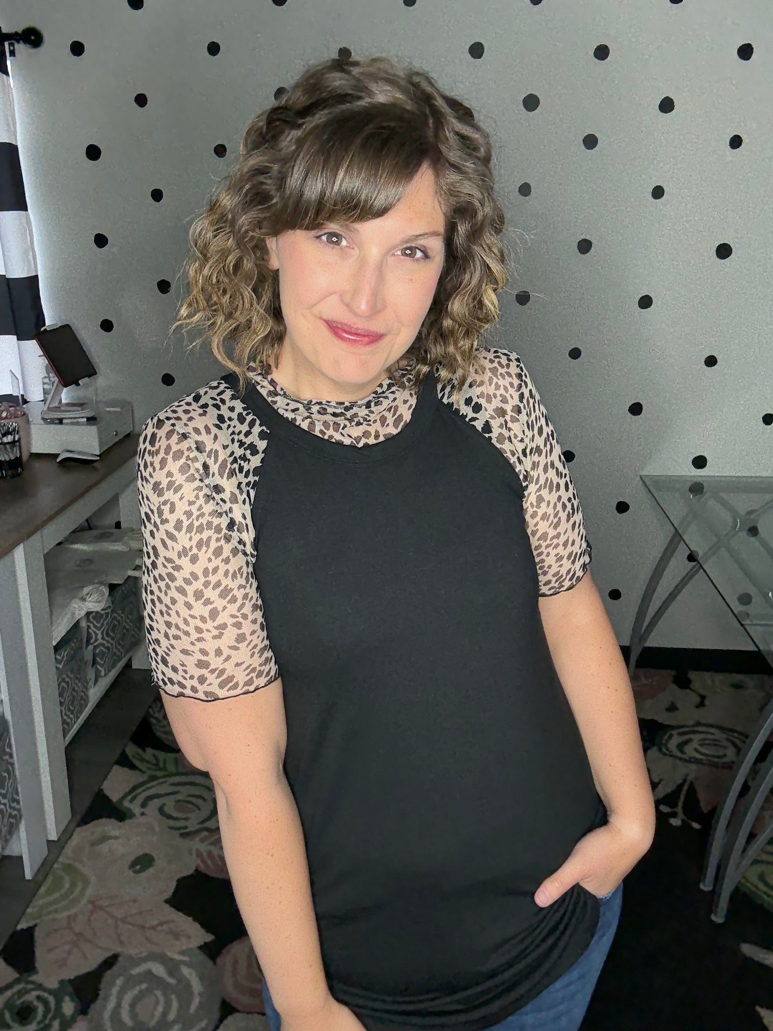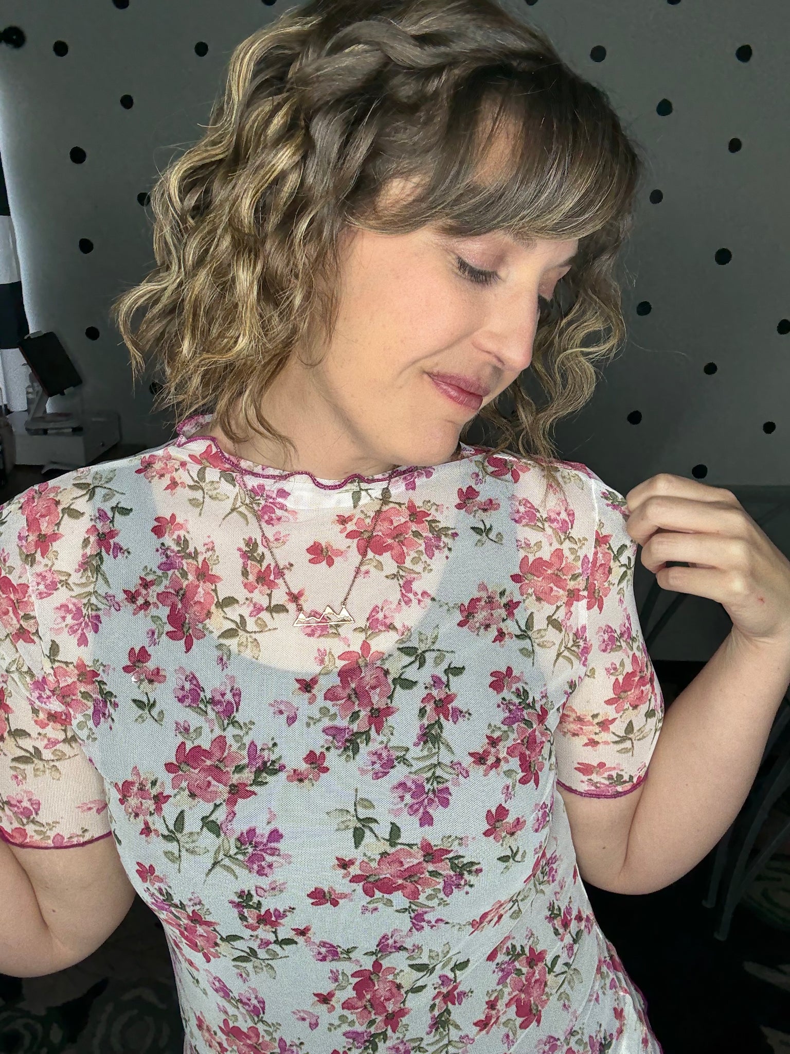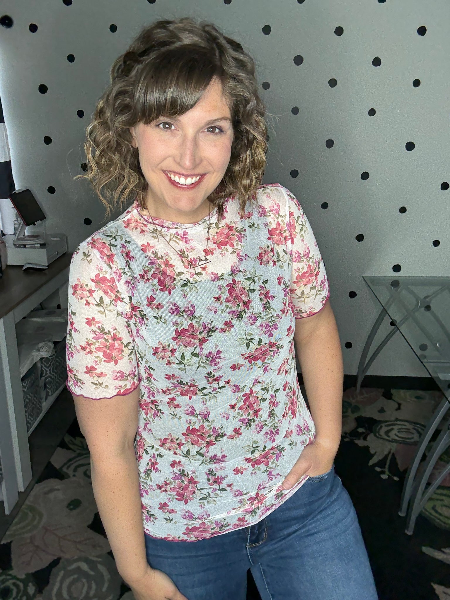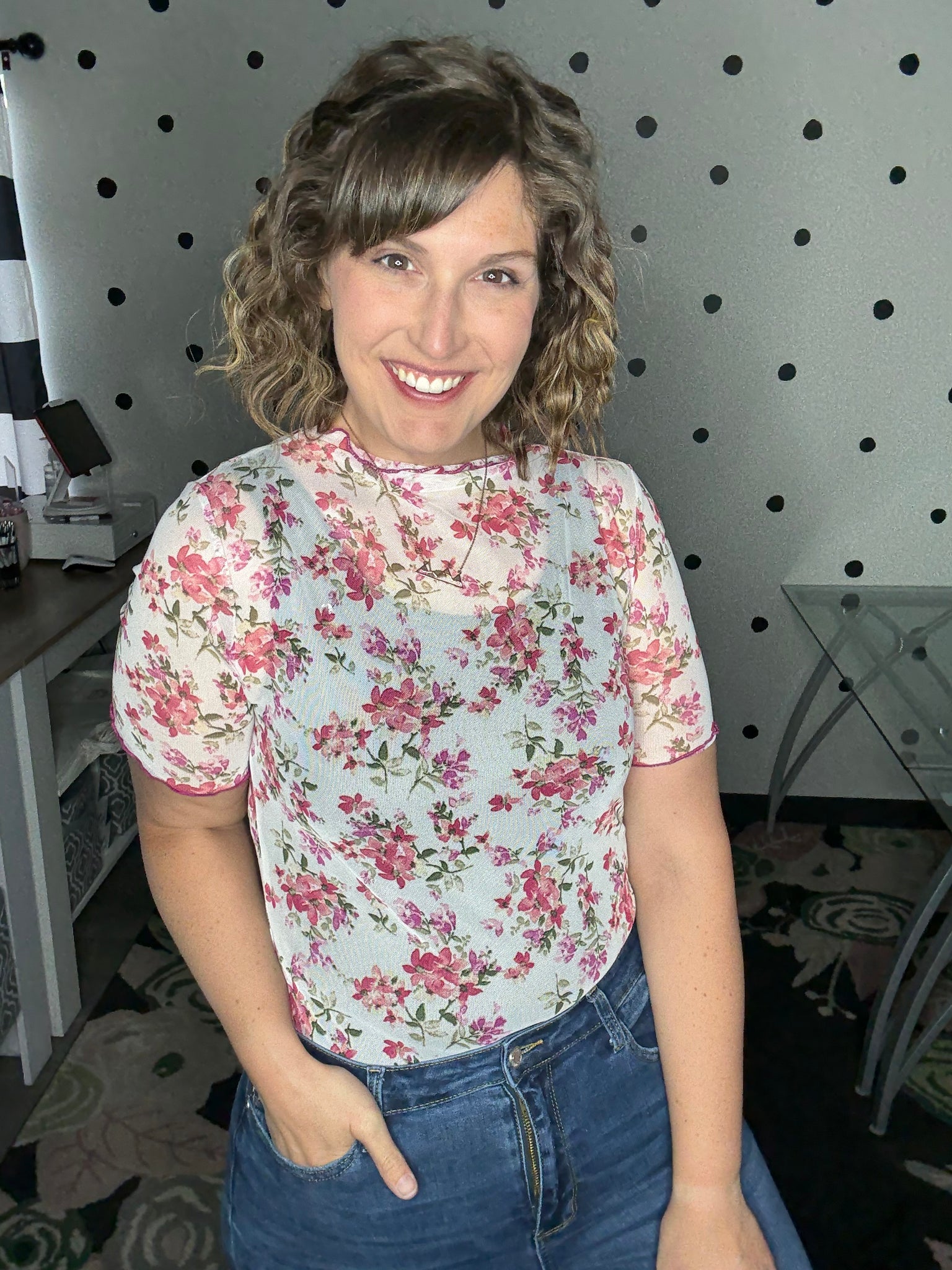 High neck short sleeve mesh top printed with FLORAL or LEOPARD. This layering piece is semi sheer but stretchy. You could wear something under it or over it. The fit is SLIM. Some ladies will prefer to size up. Alyssa is normally a medium and wearing the large here. 92% POLYESTER 8% SPANDEX