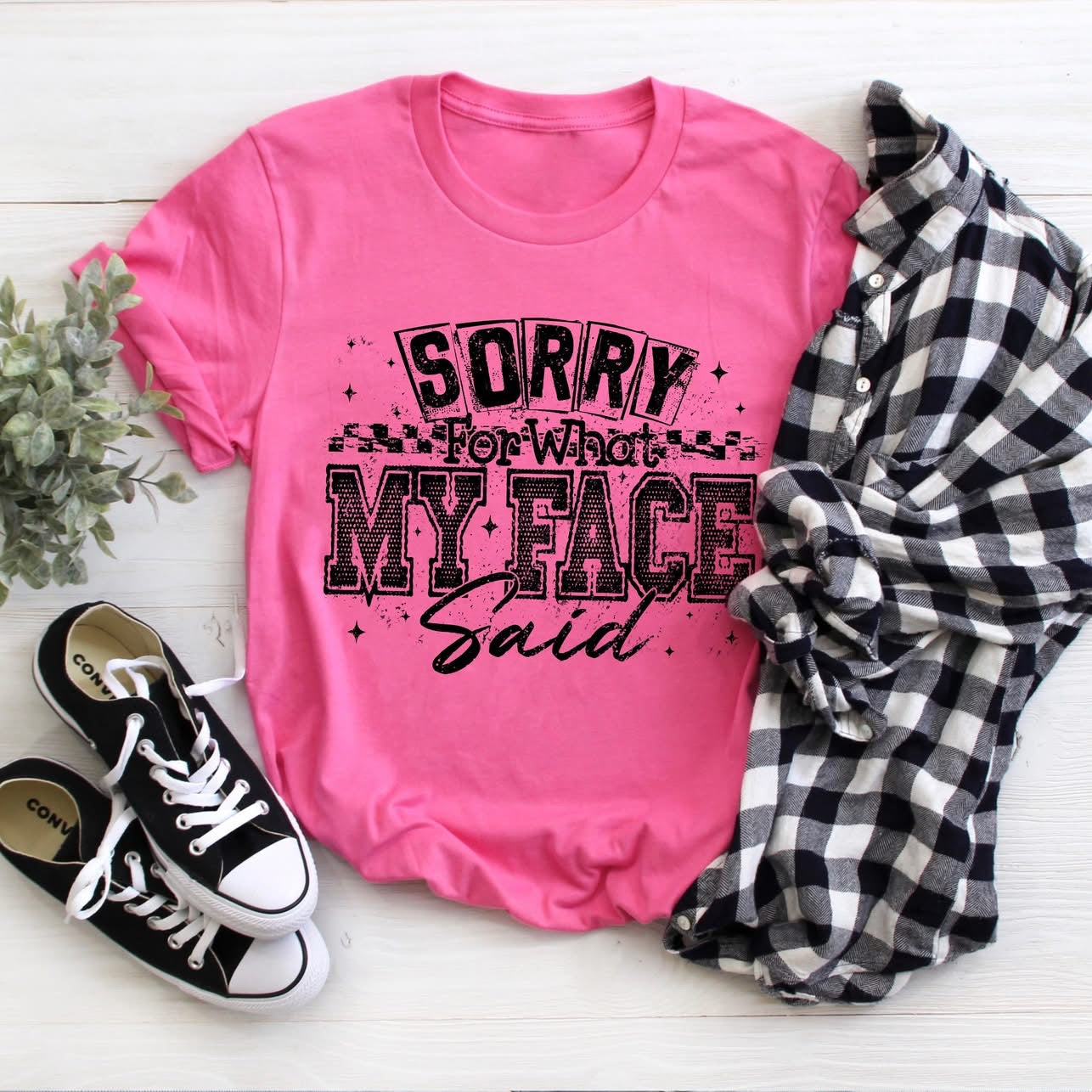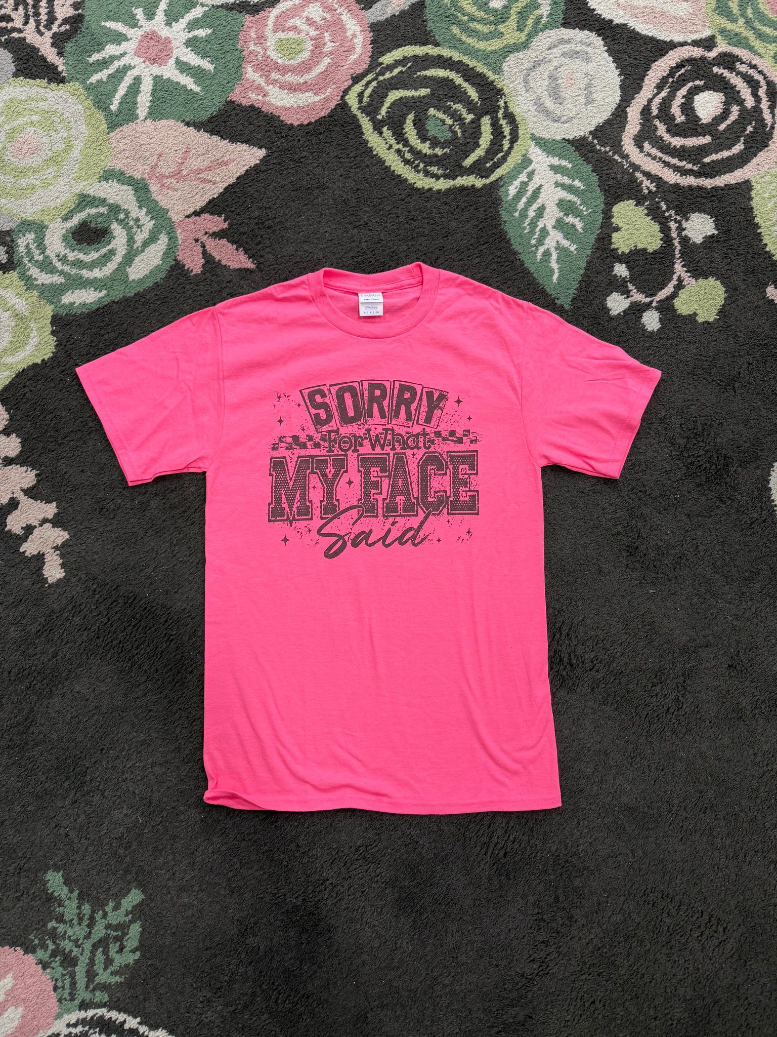 I'm Sorry For What My Face Said - printed on a NEON pink unisex fit short sleeve tshirt.