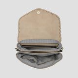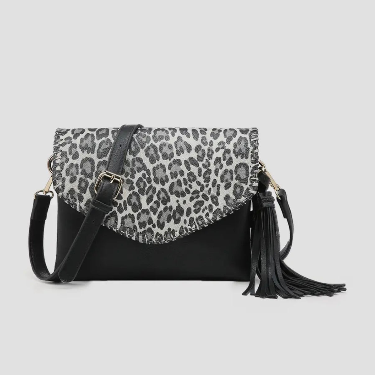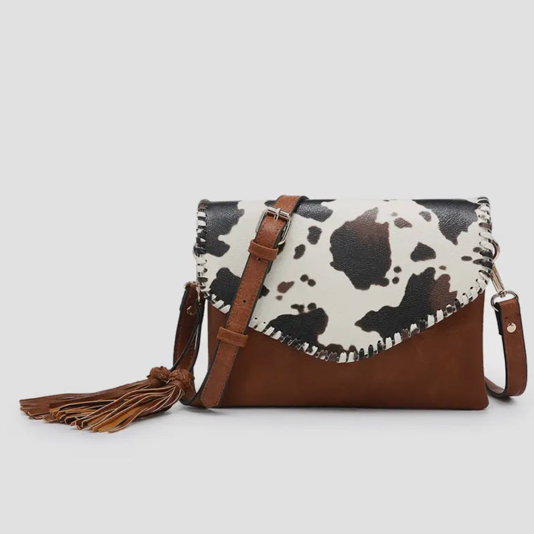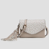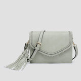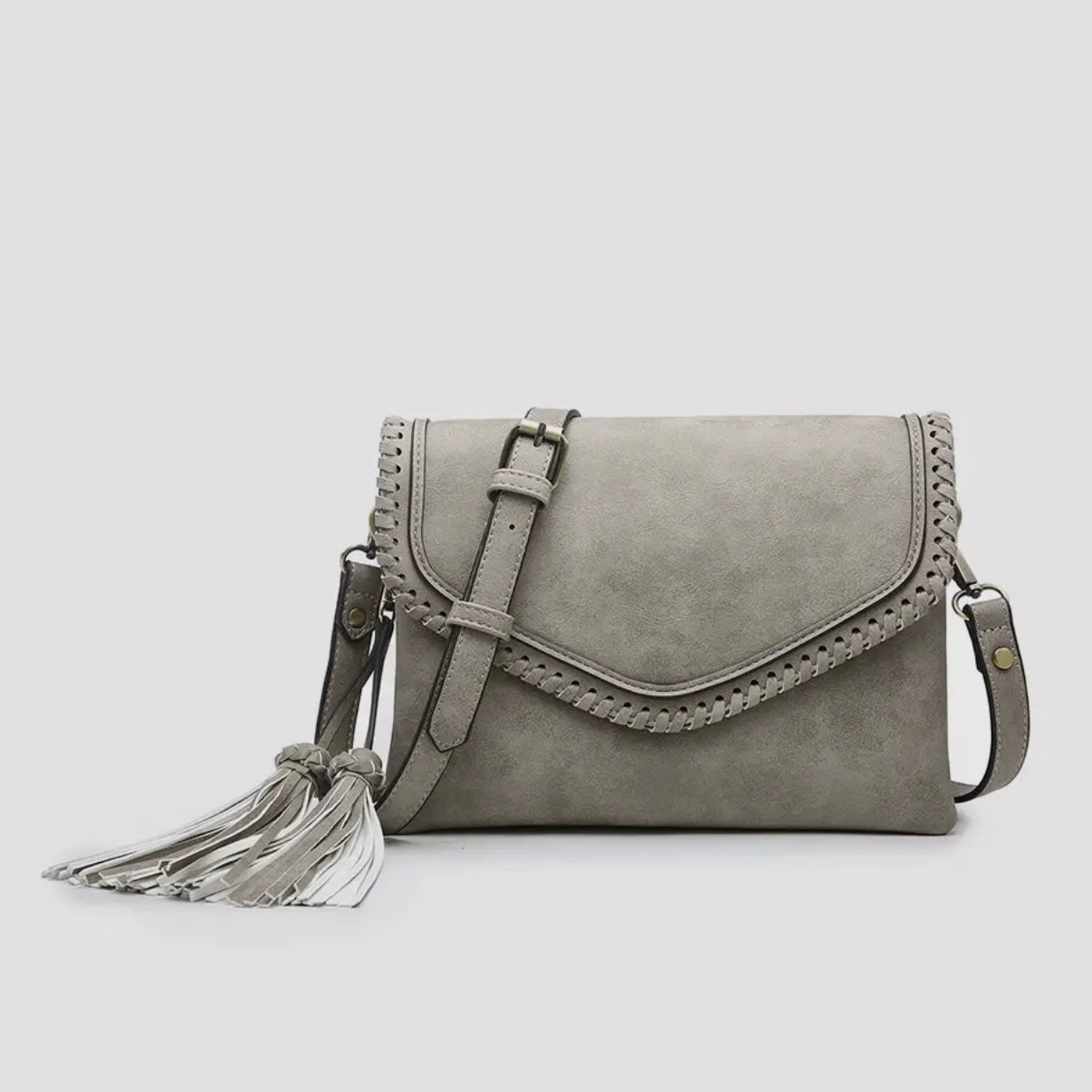 The Sloane Flapover Crossbody offers a blend of bohemian charm and practicality. With its braided/whipstitch edges and fringe tassel trim, it adds a stylish touch to any outfit. Crafted from vegan leather, this crossbody embodies both fashion and compassion.
