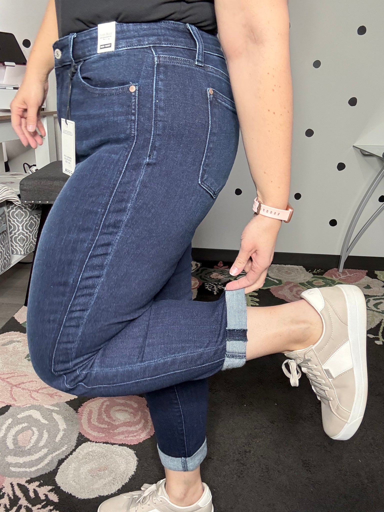 Fit: Judy Blues run generous and most ladies are able to size down one from their "normal even department store" size. For example if you are typically a size 8 in stores then you would size down to the 7 here. Plus size ladies will also find Judy Blues to run big and are usually able to size down one. Alyssa's normal size is a 14 so she wears a size 13 in Judy Blues.