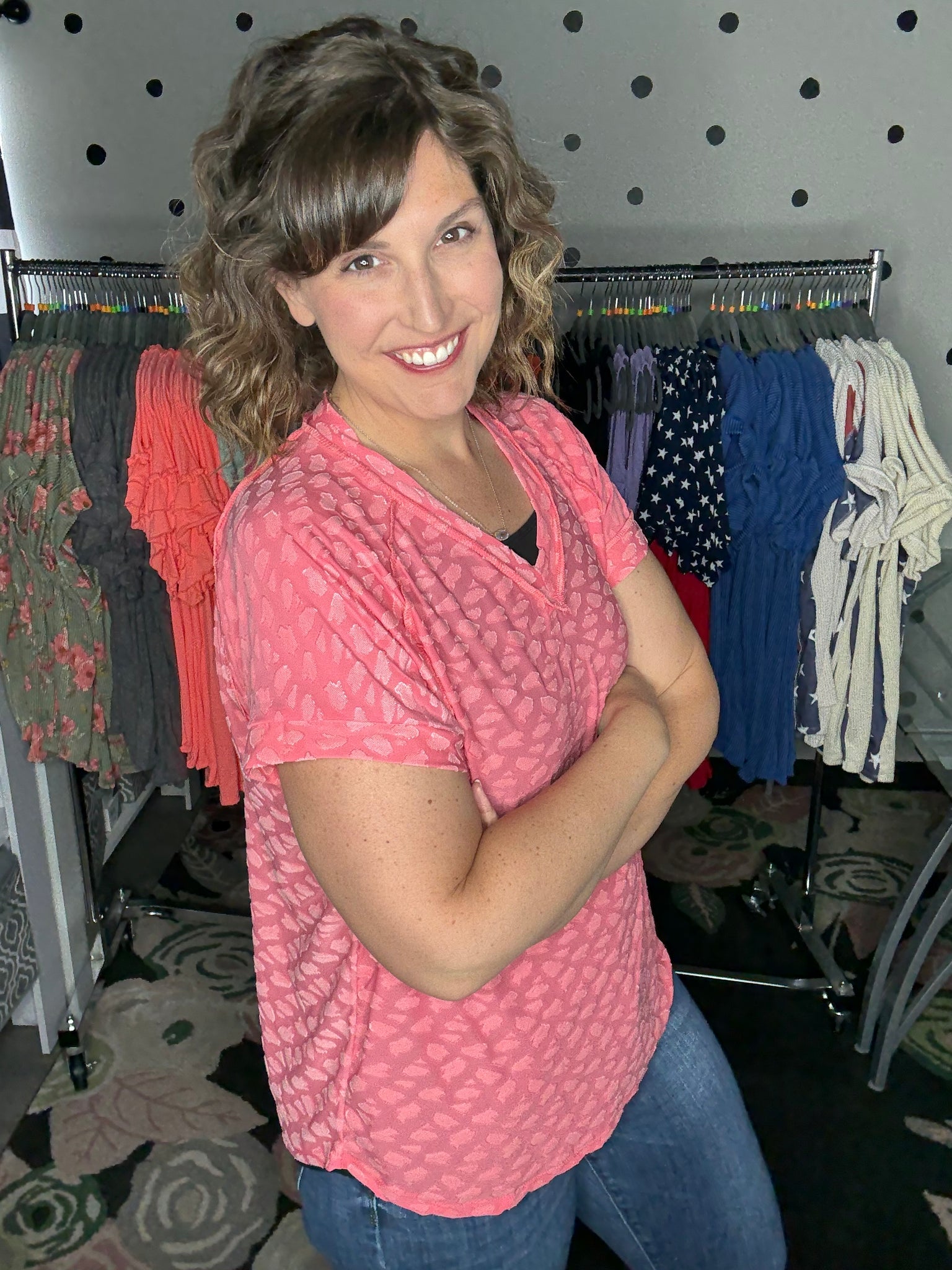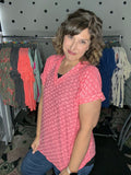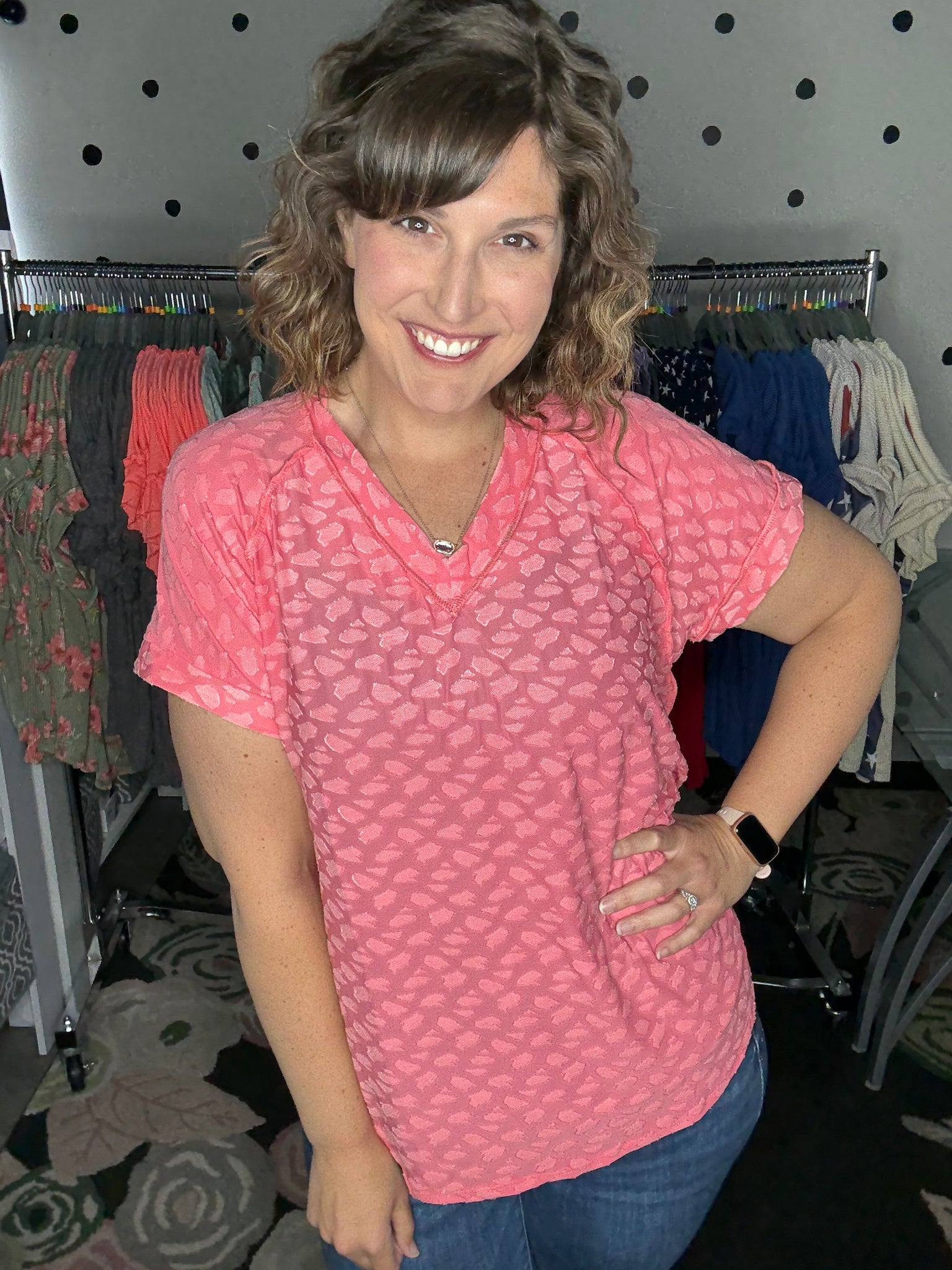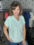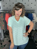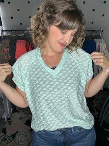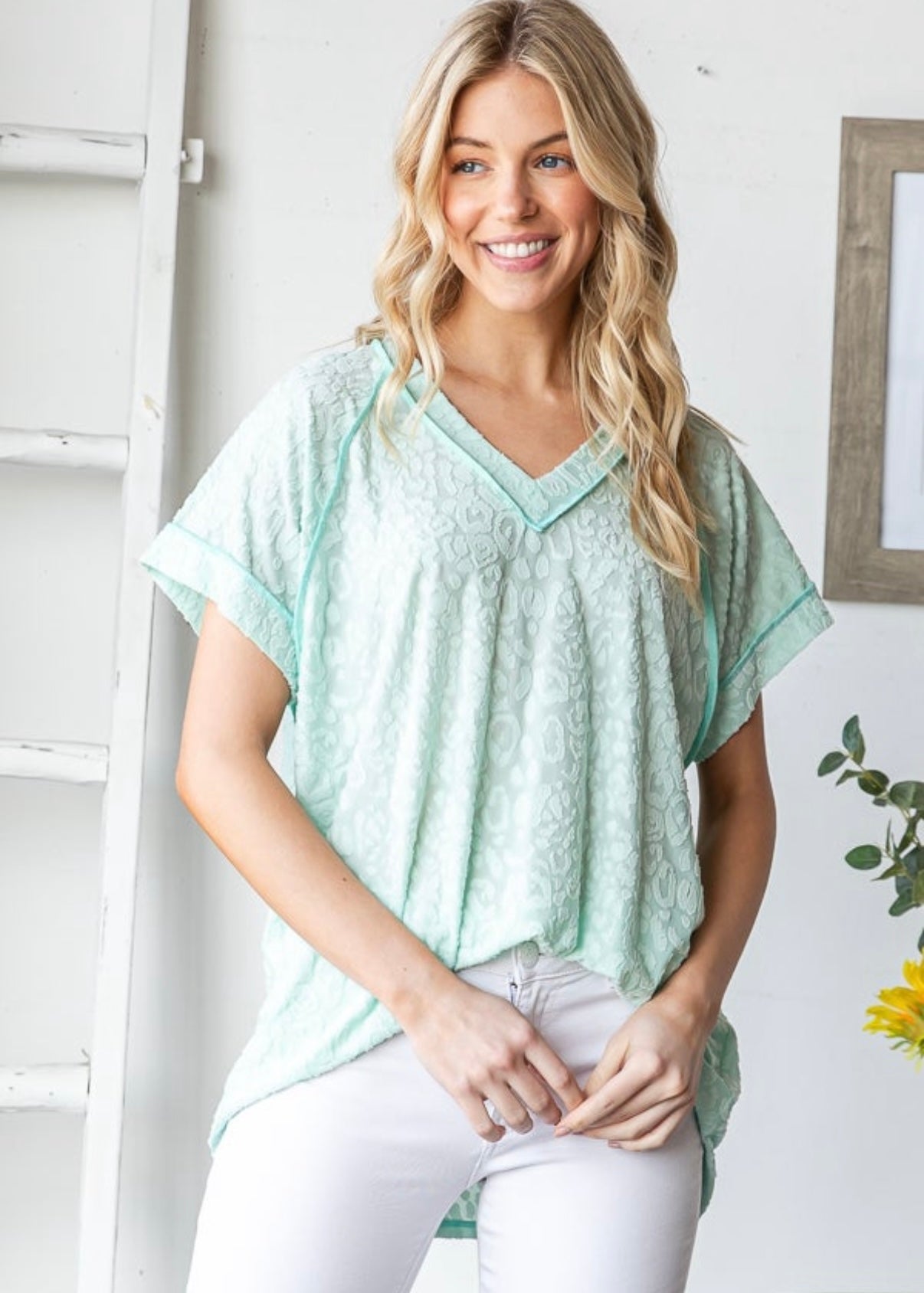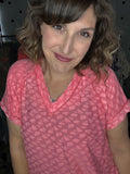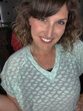 Leopard burnout tees - the lightest top ever! This fabric is so soft and so light, helping you stay cool in this summer heat! Available in mint or coral this short sleeve v-neck is a VERY generous and relaxed fit. Alyssa is sized down to the SMALL here so please keep that in mind.