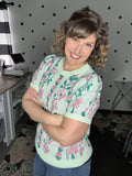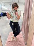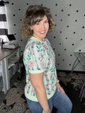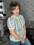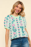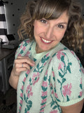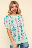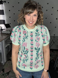 Mint Floral Short Sleeve Sweater