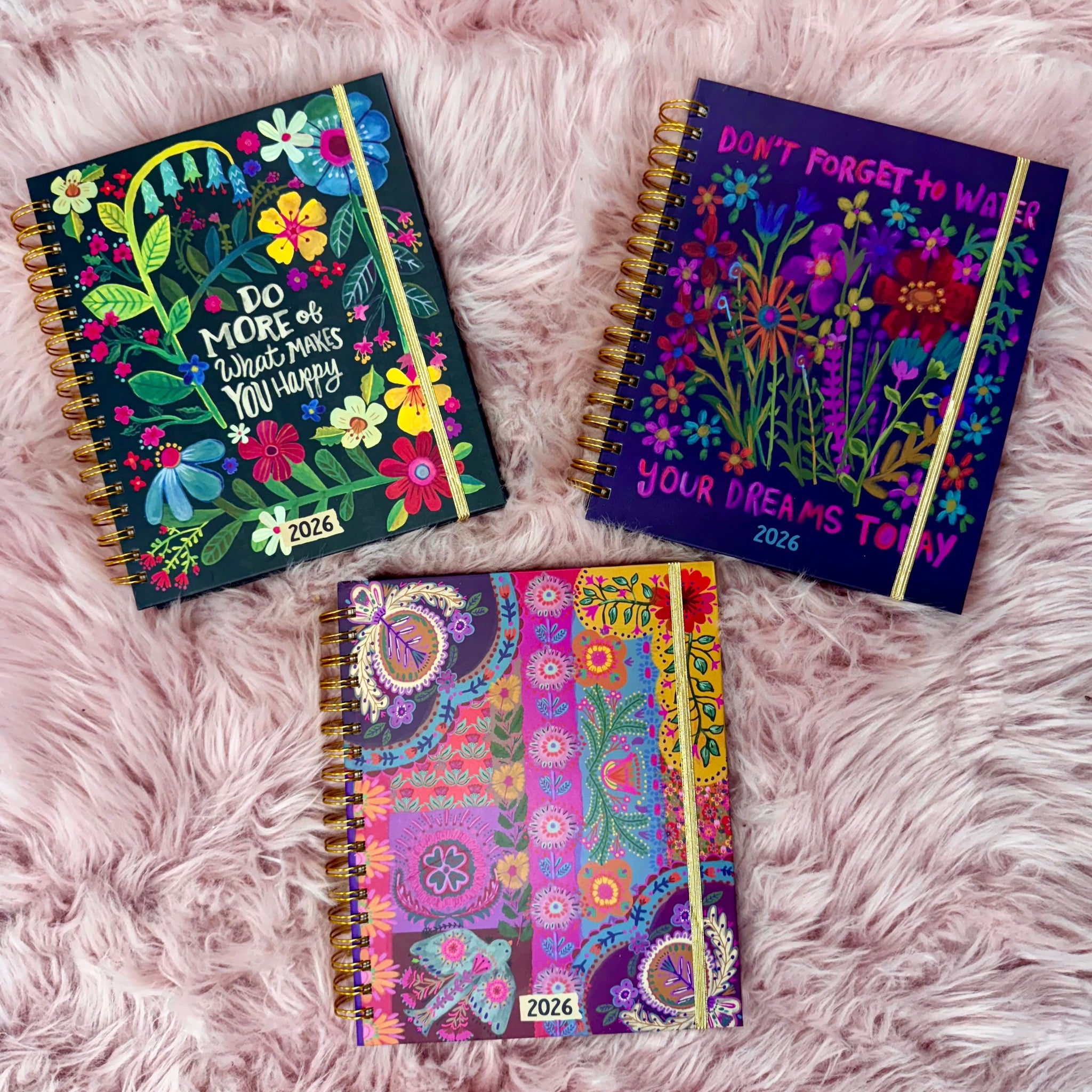 It's the little things that make planning more fun... like inspirational quotes and fun stickers!! This spiral bound calendar gives you the month at a glance as well has a back folder pocket and a sheet of stickers.
