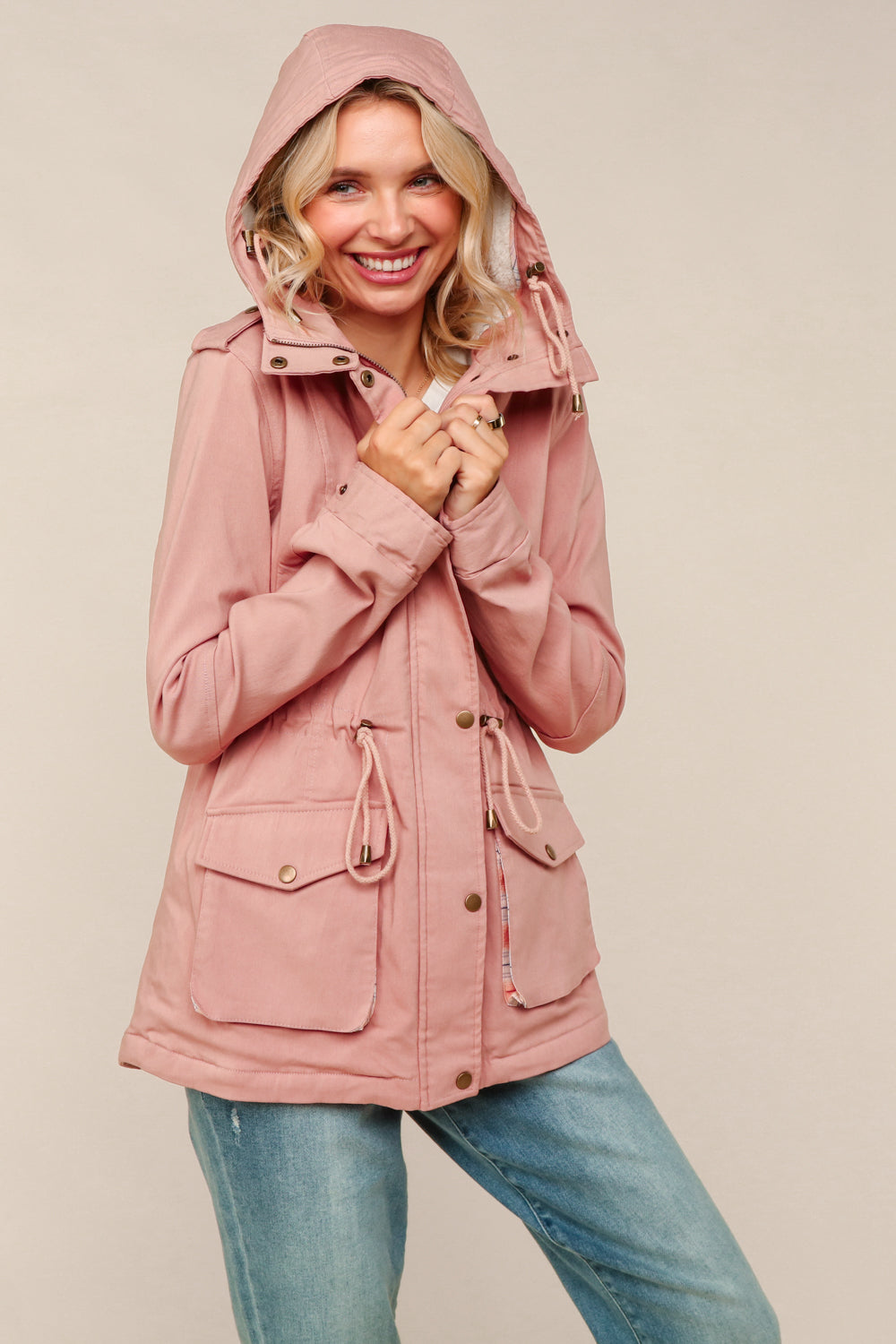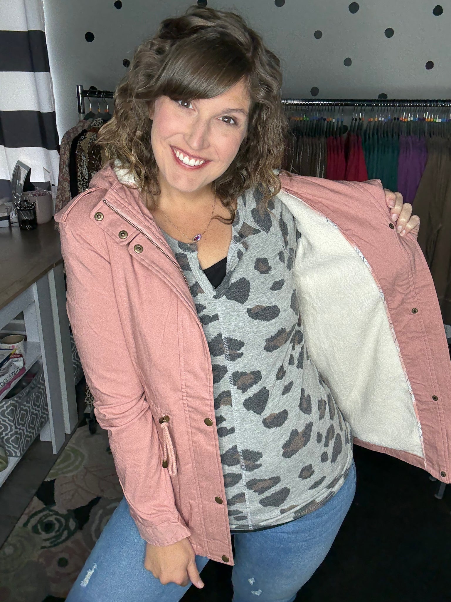The perfect jacket for fall! This cozy sherpa lined coat features both a zip up or snap option. The adjustable waist, hood, and pockets are fantastic too. The fit is true to size. Alyssa is wearing her true size of a medium here. Fabric is 82% rayon, 16% nylon, 2% spandex.
