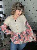 Taupe & Coral Boho Top