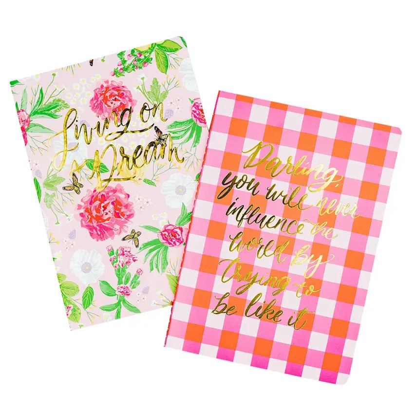2 - 5" x 7" inch lined notebooks - one floral design and one stripe design