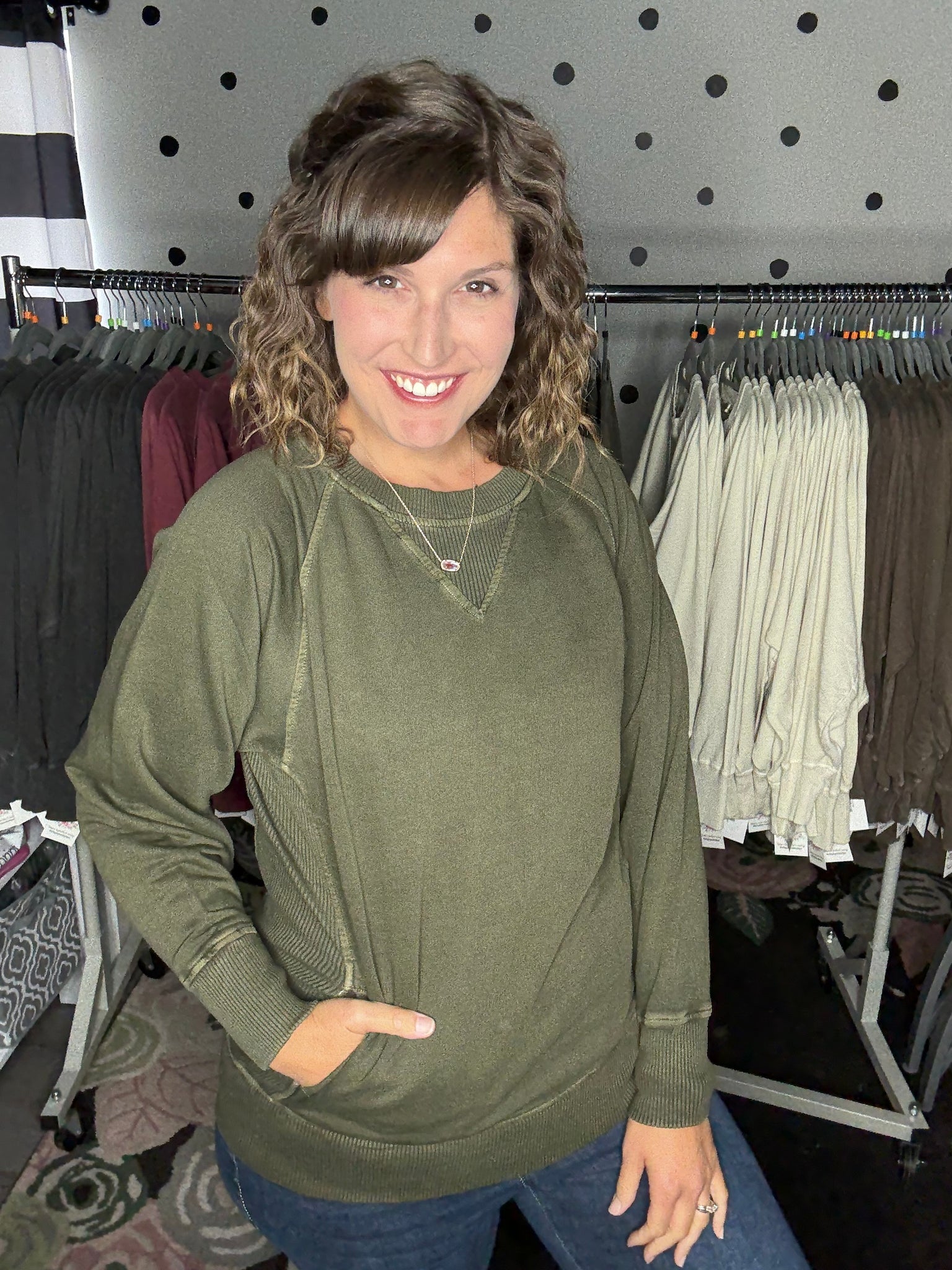 PIGMENT DYED FRENCH TERRY PULLOVER WITH POCKETS