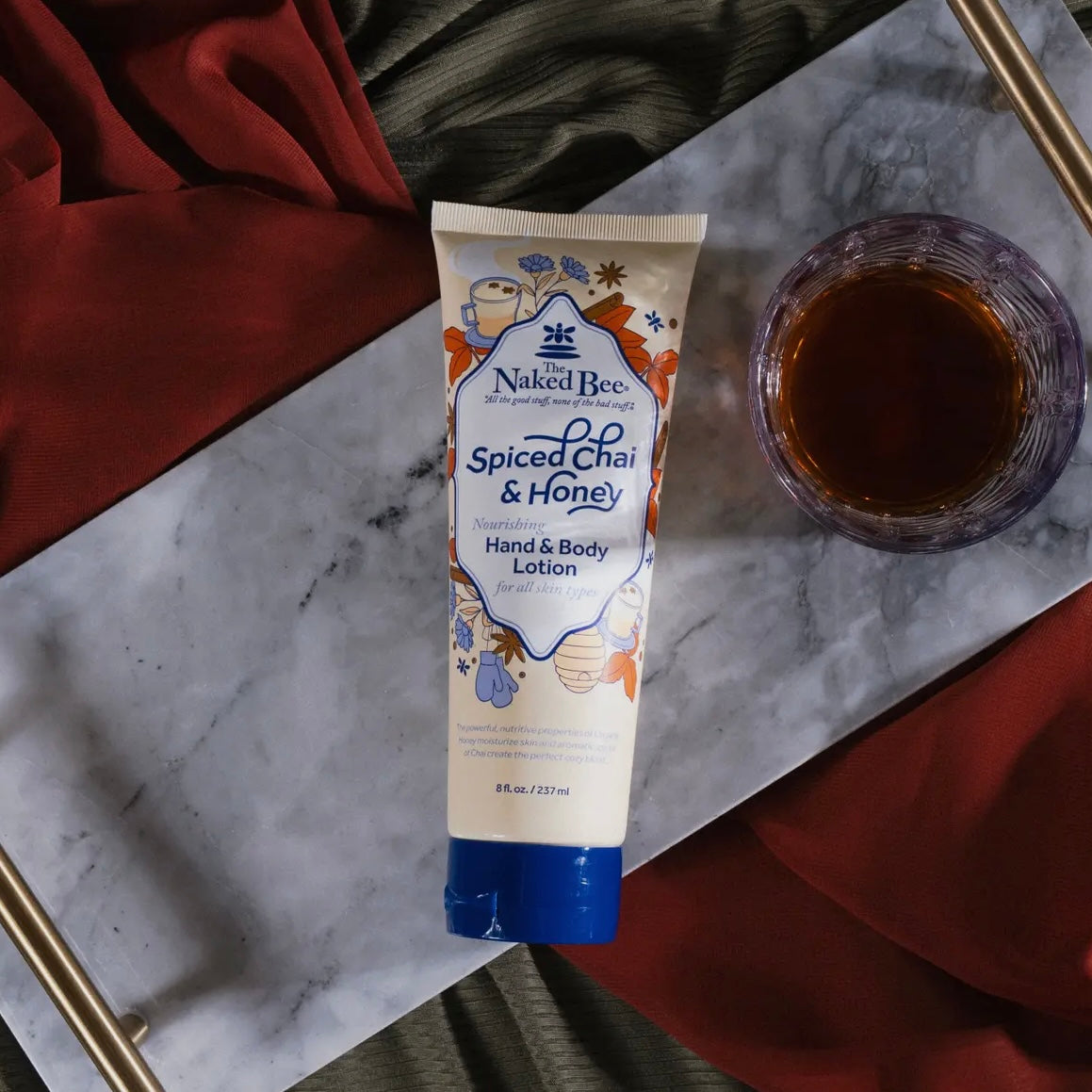 Wrap yourself in the luxurious embrace of autumn with our Spiced Chai & Honey Nourishing Hand & Body Lotion. This seasonal treasure offers more than the warm, aromatic blend of spiced chai and honey, it also nourishes your skin, leaving it feeling silky and rejuvenated. Perfect for those who seek a cozy, indulgent escape with every use, this limited edition lotion is your go-to for softening and pampering throughout the cooler months.